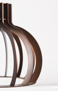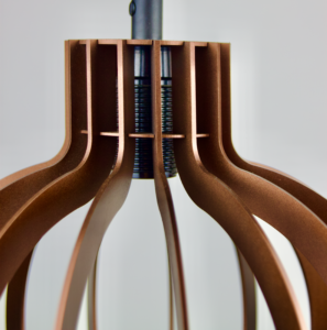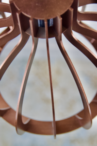 De koperen lamp voegt een moderne, industriële uitstraling toe aan
